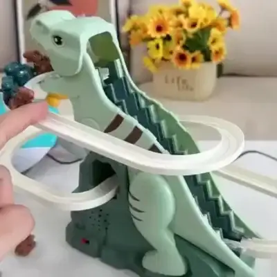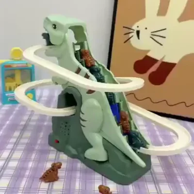 DINOSLIDE® превръща всяка стая в праисторическо приключение: динозаврите се изкачват по стълбичката и се спускат по трасето в непрекъснат забавен цикъл, който задържа вниманието.