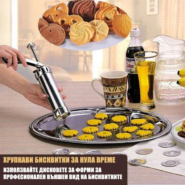 Подобрете вашата игра за правене на сладки с металният шприц Biscottu, с 23 разнообразни накрайника.
