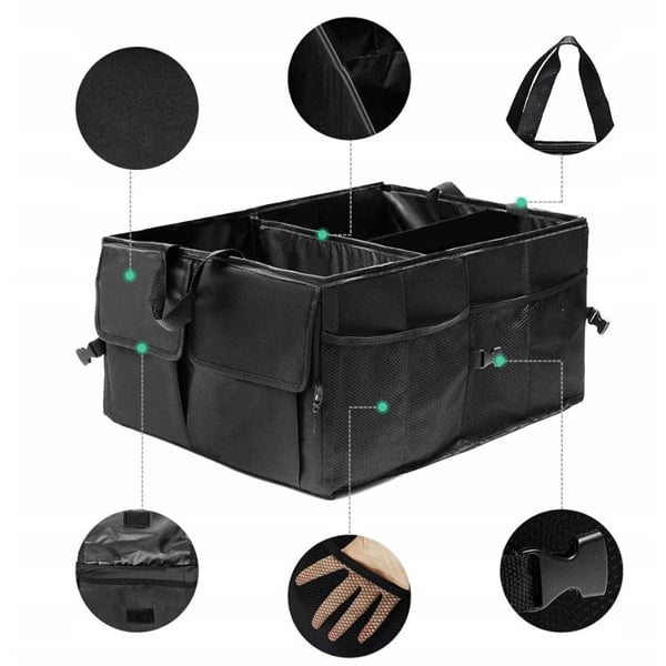 Секциите също са сгъваеми, така че можете лесно да регулирате размера и формата на органайзера според вашите нужди. Независимо дали стягате багажа си за пътуване, отивате на плажа или просто искате да поддържате колата си подредена, този органайзер за багажник със сигурност ще ви бъде полезен.